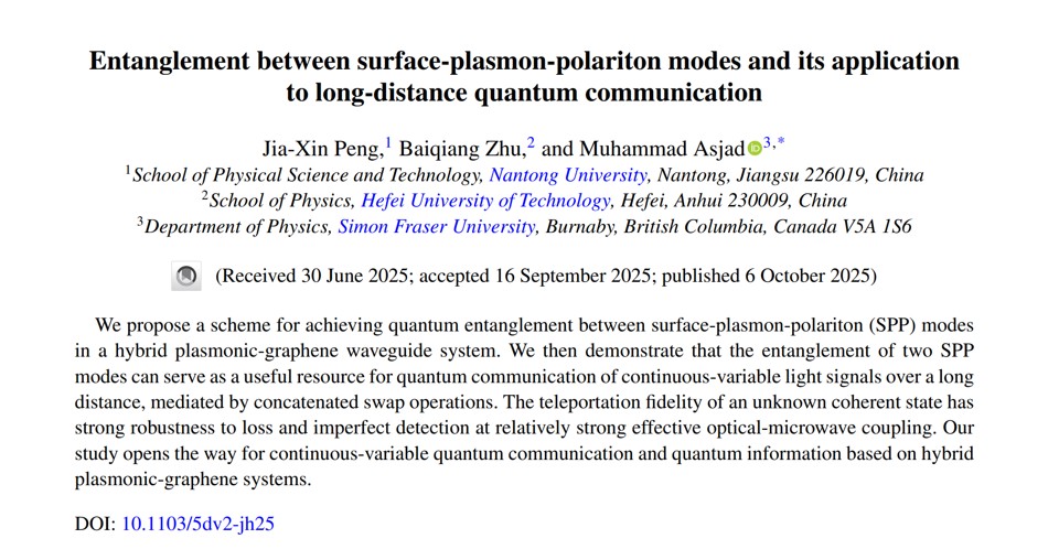 彭家鑫博士在《Physical Review A》发表最新研究成果