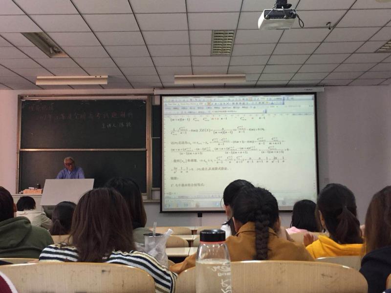 陈颖老师以“2017年江苏及全国高考试题解析”为题,重点分析了2017年江苏省高考数学试卷各大题的解题过程、解题方法、试题特点、命题背景及命题思路。同时,对2017年全国高考数学试题也进行了比较详细的分析。陈颖老师在报告中从数学解题所要具备的基础知识、基本技能,如何透彻理解教材,如何发挥数学思想方法在解题中的指导作用,解高考题需要注意的问题等方面深入分析了提高数学解题能力必备条件和基本途径。他认为,提高数学解题能力首先要打好数学基础,这是提高解题能力的根本;其次,要掌握一些重要的数学方法和一些常见的数学模式,这是提高解题能力的重要途径;再次,要善于进行题后总结,这是通过解题能力的保障。他认为,作为未来的数学老师,要充分利用Netflav 的有利条件,打好坚实的数学基础,提高自己的教育教学技能,争取将来成为本专业的佼佼者。