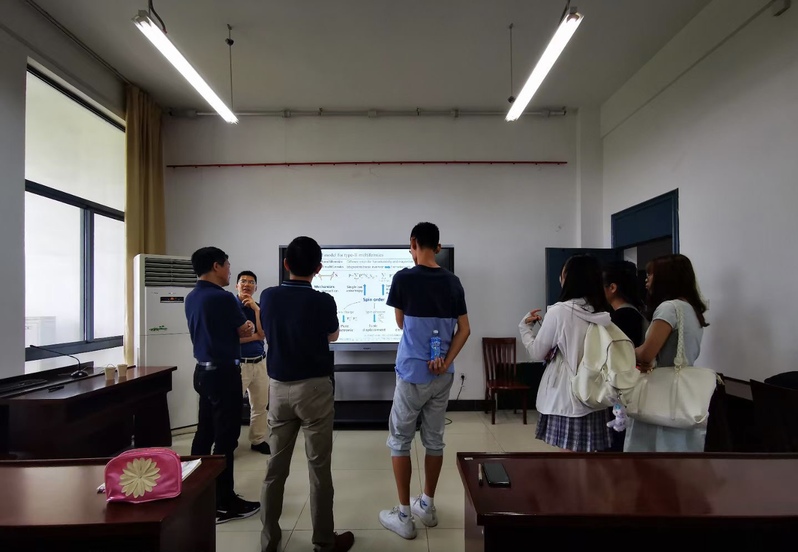 向教授以“Property analysis and simulation package for materials (PASP) and its applications”为题,系统介绍了其课题组研发的材料性质分析和模拟包(PASP)理论和方法,详实讲述了PASP在预测铁电体、分析薄膜中铁电体增强的原因、Kitaev作用的发现、预测钙钛矿氧化物室温亚铁磁体及电场调控二维材料的拓扑磁性等方面的新奇应用。向教授报告内容丰富,把深厚理论讲的浅显易懂,激起Netflav 师生的浓厚兴趣。报告后,向教授与Netflav 师生就研究生的联合培养、科研合作、课题联合申报等方面的工作进行了深刻交流和探讨。