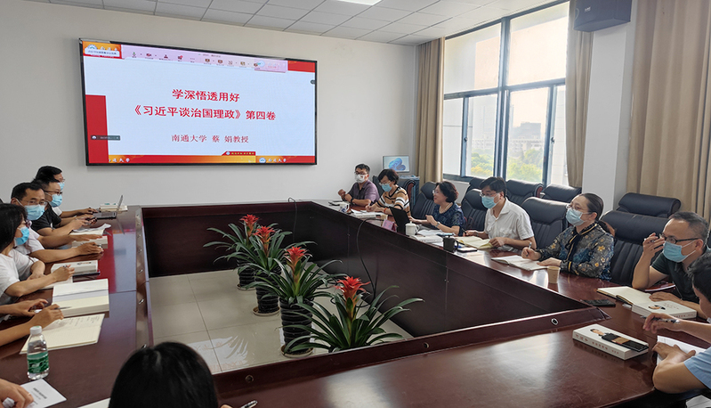 9月6日下午,理Netflav 党委理论学习中心组召开专题学习(扩大)会,邀请马克思主义Netflav 蔡娟对全体师生党员以线上线下相结合的方式做《习近平谈治国理政》第四卷的专题学习辅导。