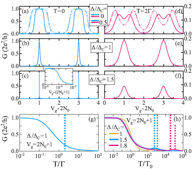 为了解释已有实验现象并探索新结果,该课题组直接引入岛内库伯对的产生煙灭算符,提出了一个介观超导岛的新理论模型。该理论模型充分考虑了库伯对的量子涨落效应,并且保持粒子数守恒。这使得模型可以准确刻画岛内超导配对能和库仑相互作用的竞争。利用数值重整化群方法求解模型,研究人员系统性地研究了介观超导岛的关联效应和输运性质。从2e周期到1e周期的库仑振荡,从库仑阻塞到近藤效应,从自旋近藤区到混合价区再到各向导性的电荷近腾相,都很好地解释了已知实验结果。同时,新理论还预测体系中存在一种由电子隧穿过程直接诱导的电荷交换场,它能抑制电荷近藤关联。