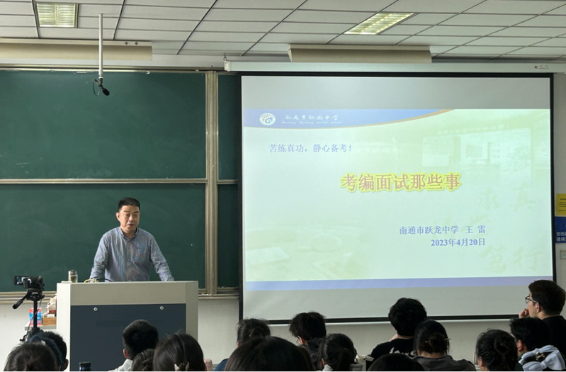 4月20日,理Netflav 邀请南通市学科带头人、南通市跃龙中学副校长王雷老师作“考编面试那些事”的报告。参加报告会的有2021级物理学(师范)专业的全体学生、物理学(师范)专业的专业负责人和物理教学法教师。