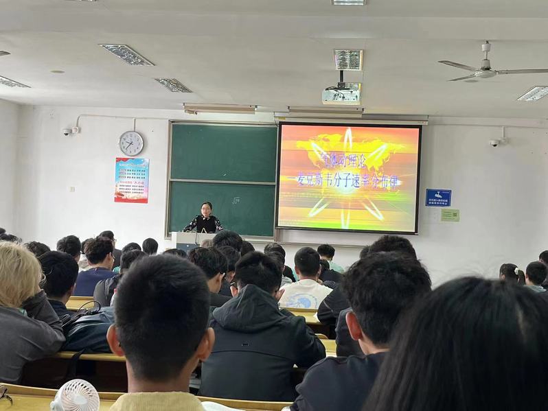 周教授围绕教学内容《麦克斯韦气体分子速率分布律》充分挖掘思政元素,反复打磨润物细无声的思政模式。她借助图片,从物理学家麦克斯韦的学术成就、培养众多高层次人才等方面向同学展示大师“宝剑锋从磨砺出、清风徐徐沐桃李”的风采,激发学生学习意志和远大志向。周教授通过提问互动、讨论探究活跃课堂气氛,助力学生快乐学习。参与观摩的老师也受益良多。