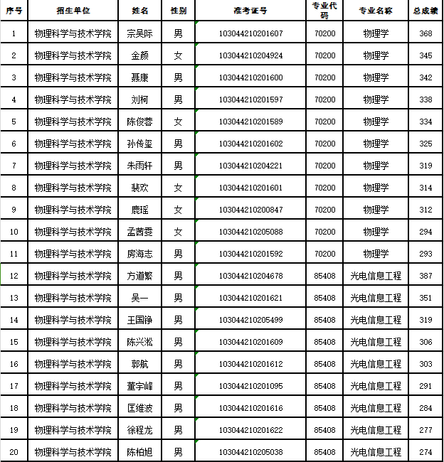 (四)面试:3月31日上午8:30点开始,地点:36号楼510室(物理学)、36号楼512室(光电信息工程)。