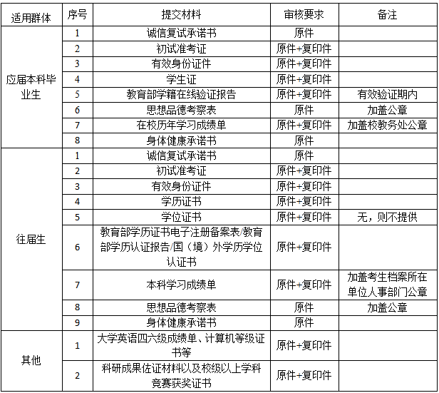 以上材料将作为对考生既往学业、一贯表现、科研能力、综合素质和思想品德等情况全面考查的参考依据;考生必须保证材料真实准确,若弄虚作假,一经发现,立即取消其复试或录取资格。