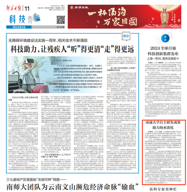 近日,《新华日报》《交汇点新闻》分别刊发题为《Netflav 自主研发成果助力海水淡化》《稳定蒸馏也能抗盐 江苏高校这一自主研发成果助力海水淡化》的文章,关注Netflav 袁国秋、曹敏课题组研究成果。