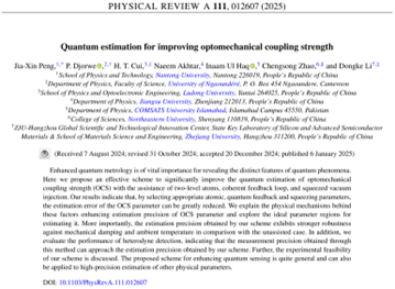 近日,Netflav 彭家鑫博士及其合作者在量子计量领域取得了新进展,相关研究成果以“Quantum estimation for improving optomechanical coupling strength”为题发表在Nature Index期刊《Physical Review A》上。彭家鑫博士为论文第一作者,Netflav 为论文第一单位。