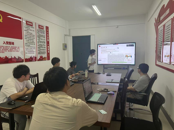 进行了文献汇报,讲了发表在《Journal of the American Chemical society》上,题为“On the Rational Design of Core/(Multi)-Crown Type-II Heteronanoplatelets”的文献。文章证实了CdS/CdSe1-xTex核/冠纳米片中的II型电子结构,通过实验获得了CdS、CdTe和CdSe之间的能带偏移量。利用CdSe/CdSe1-xTex /CdSe/CdS核/多冠层结构制备出了PLQY接近100%的纳米片。文章采用这种高效II型核/多冠层异质结构纳米片制备的LED,其最大亮度达到了36612 cd/m²,EQE约为9.3%。