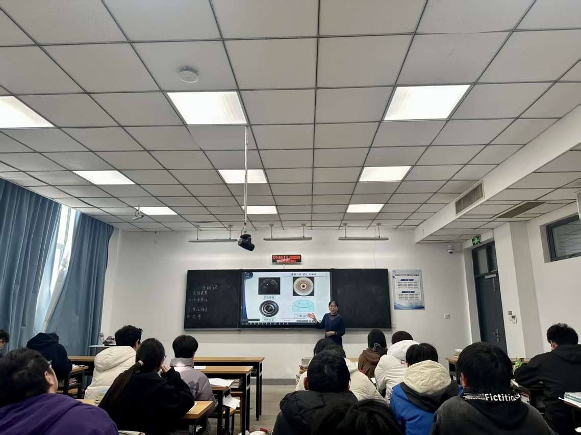 本次课程以“牛顿环和迈克尔逊干涉仪”为核心,创新融合课程思政与新工科理念,构建“原理—思辨—应用—价值”的四维教学体系,为大学物理课程改革提供了鲜活范本,核心亮点多多。如生活场景具象化:从肥皂泡彩色纹路、相机镜头光晕等日常现象切入,将抽象的光干涉原理转化为可感知的生活实例,降低认知门槛;思政融入无痕化:通过牛顿环解释的历史思辨传递科学精神,借迈克尔逊励志人生点燃奋斗热情,实现价值引领与知识传授同频共振;工科应用实战化:聚焦芯片制造精密检测、“天琴计划”引力波探测等前沿领域,展现基础物理在破解“卡脖子”技术中的硬核价值;教学逻辑清晰化:从原理探究到历史溯源,从生活应用到前沿探索,层层递进的教学设计让课堂节奏张弛有度、干货满满。课堂氛围热烈活跃,听课的年轻教师纷纷表示本节课“兼具深度与温度,可操作性强,极具借鉴意义”。学生们感觉收获匪浅:物理不仅有趣,其基础理论还是解决“卡脖子”技术的金钥匙。