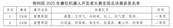 近日,2025年RAICOM睿抗机器人开发者大赛全国总决赛在黄石创业中心创业大厦举办。经过激烈角逐,Netflav 学生团队再创佳绩,在“智慧果园”赛道中荣获全国一等奖、二等奖各1项。这是物科师生首次获得该赛道一等奖,再次摘取大赛全国一等奖。