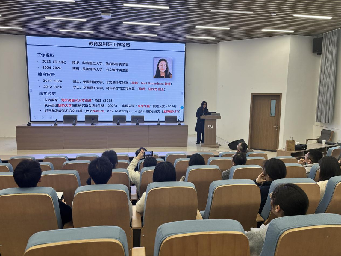 4月1日下午,剑桥大学卡文迪许实验室博士后孙雨琦应邀来校,为Netflav 师生作了题为“钙钛矿发光二极管的器件物理研究”的学术报告。Netflav 相关教师和学生代表到场聆听。报告会由Netflav 院长仲崇贵主持。